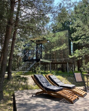 унікальний будиночок з дзеркальним єктер‘єром і перший в своєму роді в Україні . Він був розроблений з одним відкритим фасадом-вікном, що відкриває приголомшливі краєвиди з видом на озеро.